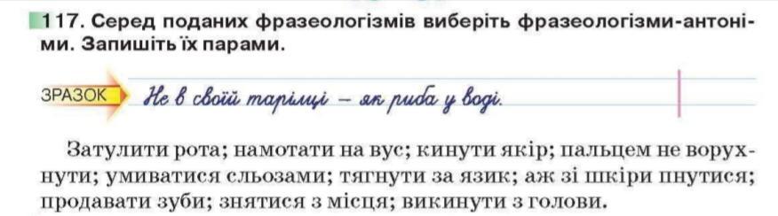 кинути якір - знятися з міста; пальцем не ворухнути - аж зі шкіри пнутися; намотати на вус - викинути з голови ;