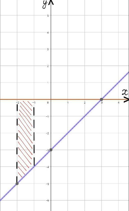 Вычислите площадь фигуры ограниченой графиками функций y = 0 ; y = x - 3 ; x = -1 ; x = -2