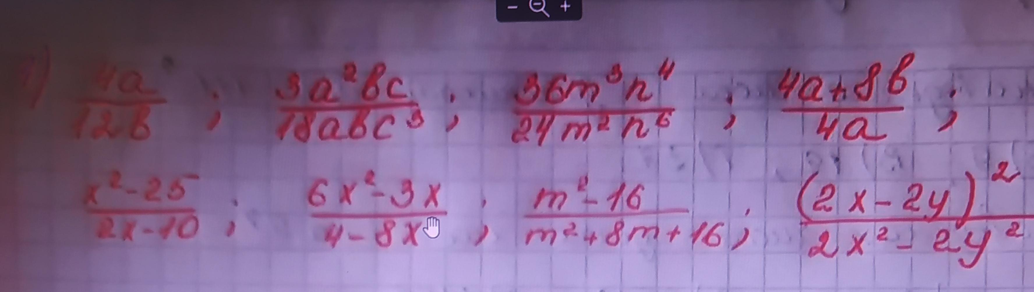 1.4a/12b, a/6c², 3m/2n², a+2b/a, x+5/2,не смогла решить, m-4/m+4, 2x-2y/x+y