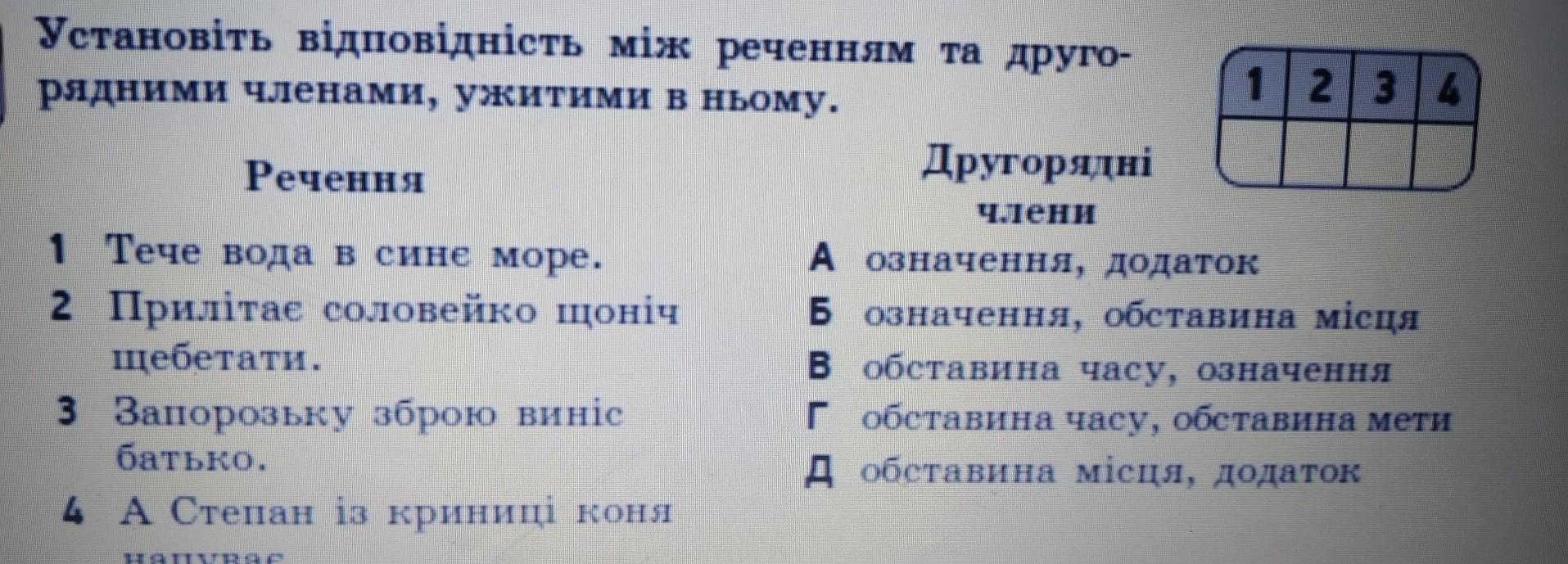 4 - Д (із криниці - обставина місця, коня - додаток)