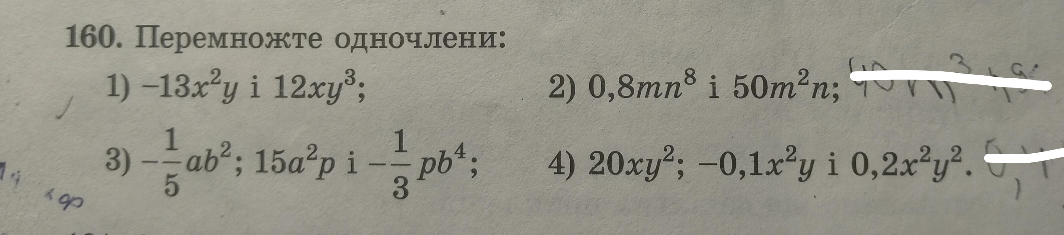 4) 20xy²; -0.1x²y і 0.2x²y²