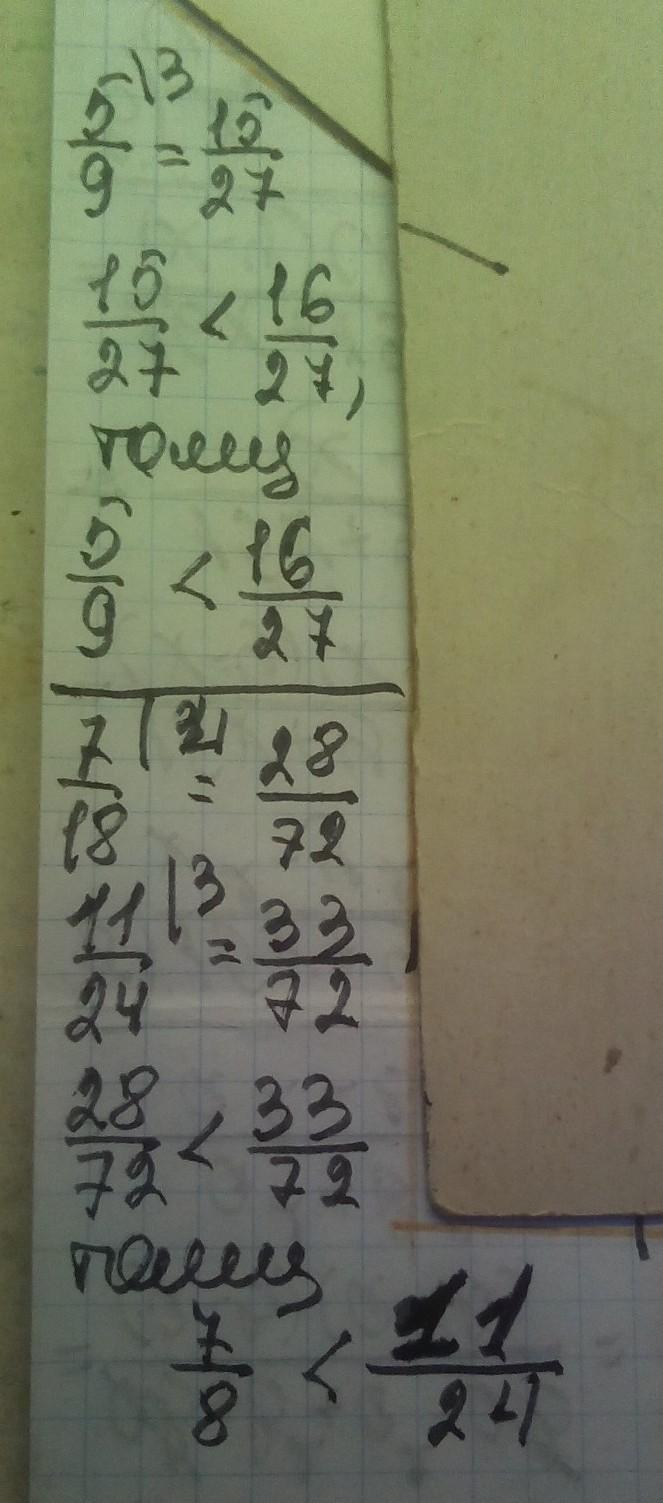 Ответ: а) 15\27<16\27 б) 28\72<33\72