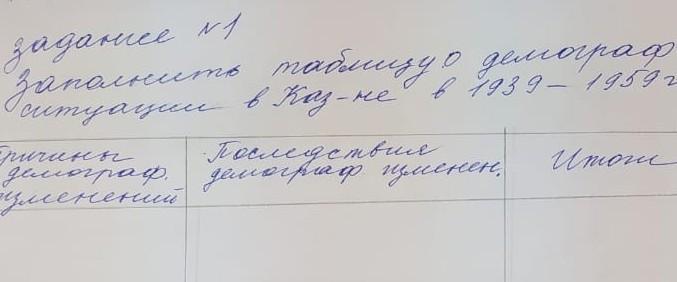 Заполните таблицу демографической ситуации в Казахстане в 1939 1959 году причины демографических изменений последствия демографических изменений итог