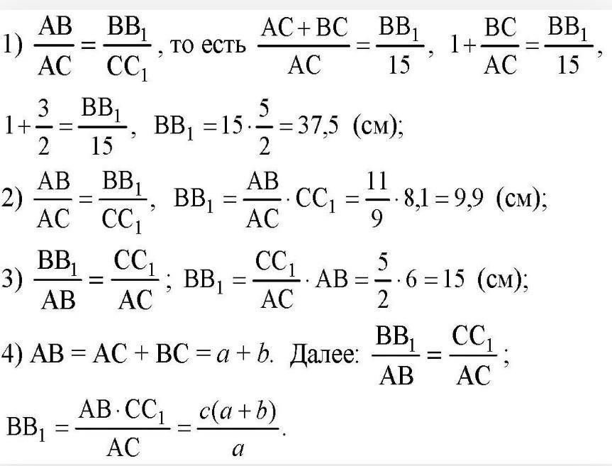 Через кінець А відрізка АВ проведено площину а(альфа).Через кінець В і точку С цього відрізка проведено паралельні прямі, які перетинають площину а(альфа) і в точках В1 і С1.Знайти довжину відрізка вв1 якщо ав=9 ас:cc1 =3:2