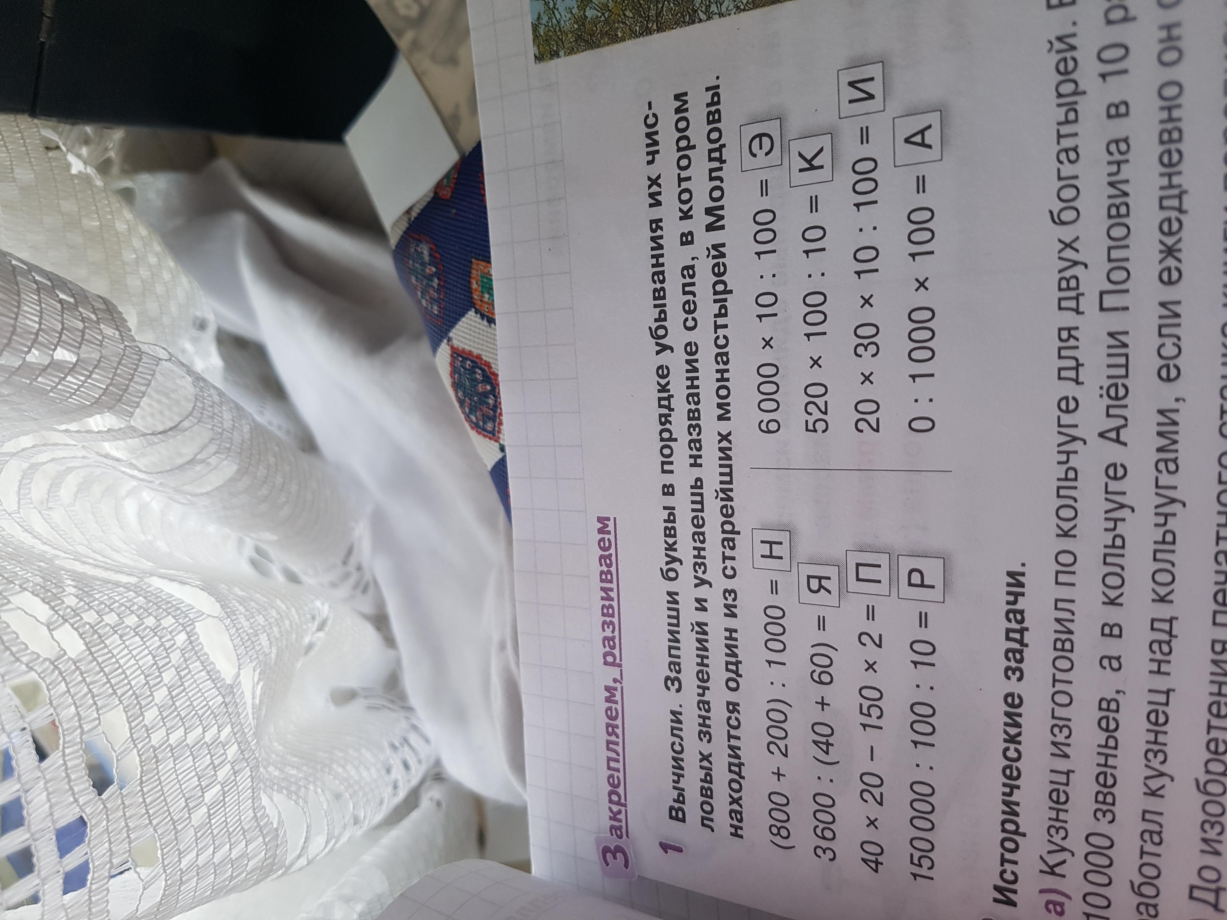 Вычисли. Запиши буквы в порядке убывания их числовых значений и узнаешь название села, в котором находится один из старейших монастырей Молдовы.