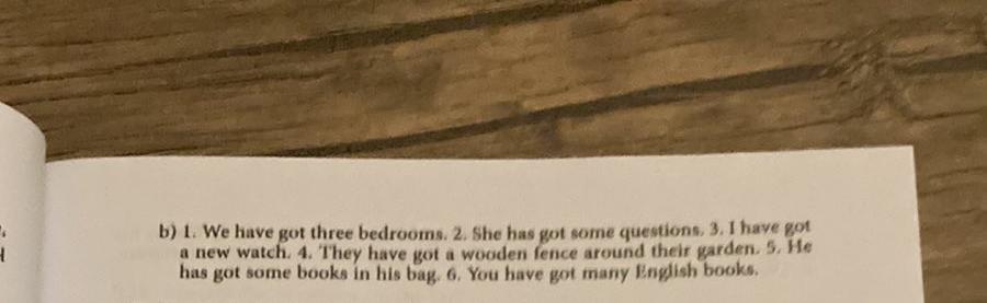 1. У нас есть три спальни. 3. у меня есть новый часы. 6. у тебя есть много Английских книг