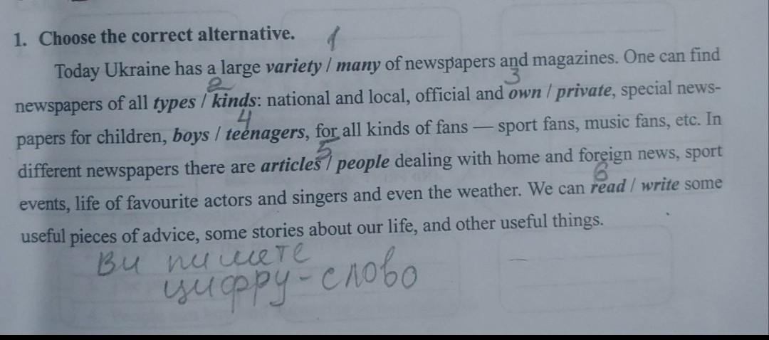 1)variety 2)types 3)private 4)teenagers 5)articles 6)read