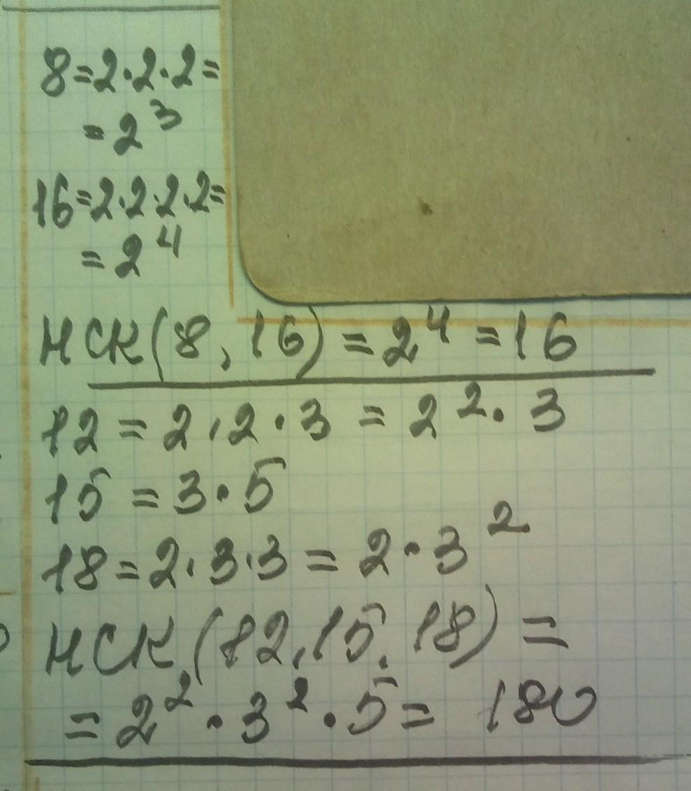 НОК ( 8; 16) = 2 * 2 * 2 * 2 = 16