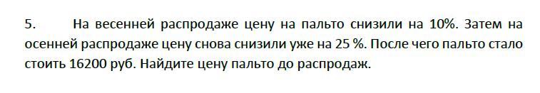 Пусть до распродажи пальто стоило х руб., тогда после первой уценки оно стало стоить 0,9х руб, после второй уценки
