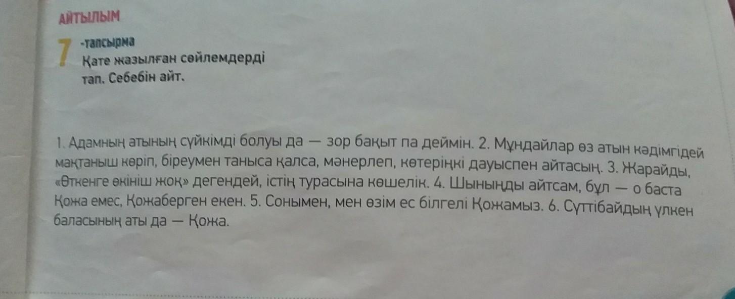 7.Тапсырма Қате жазылған сөйлемдерді тап.Себебін айт