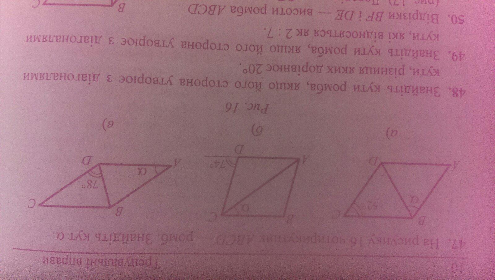 В ответе не углы между диагональю и стороной,а все 4 угла ромба