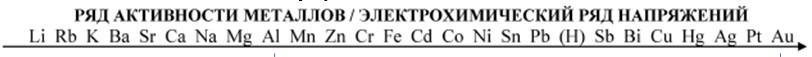 При оценке окислительно-восстановительной активности металлов и их ионов можно использовать электрохимический ряд напряжений металлов: