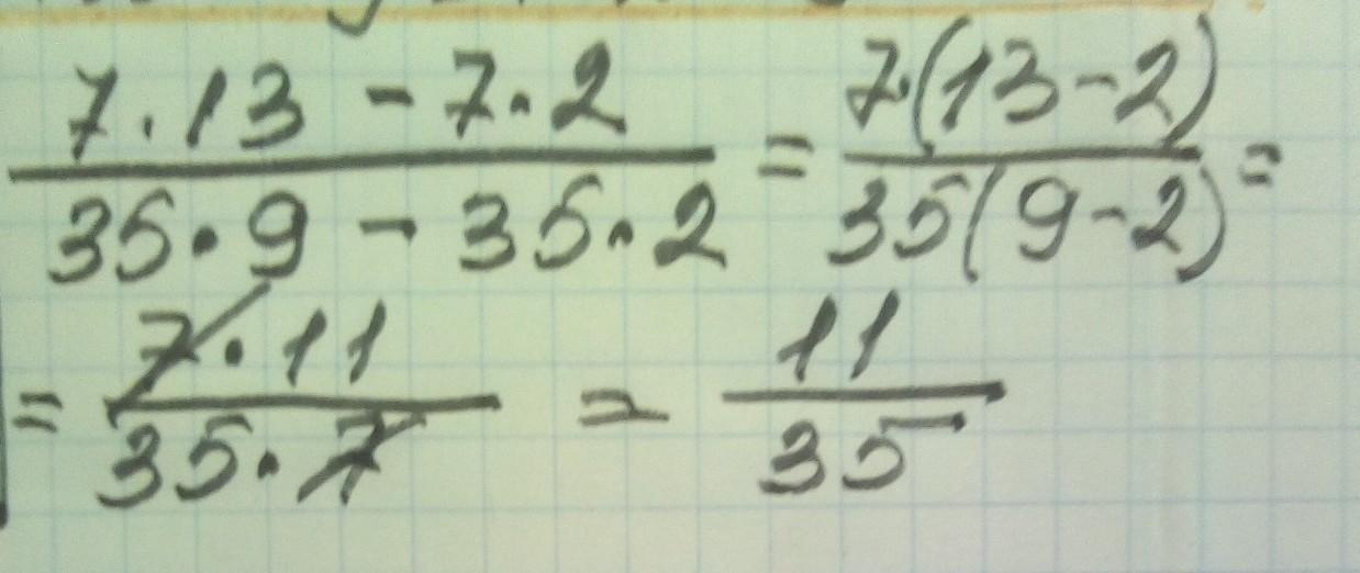 3) 77/(35 * 7) = 11/(35 * 1) = 11/35