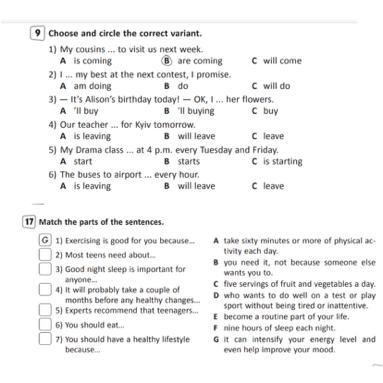 2)will do 3)’ll buy 4)is leaving 5)starts 6)is leaving