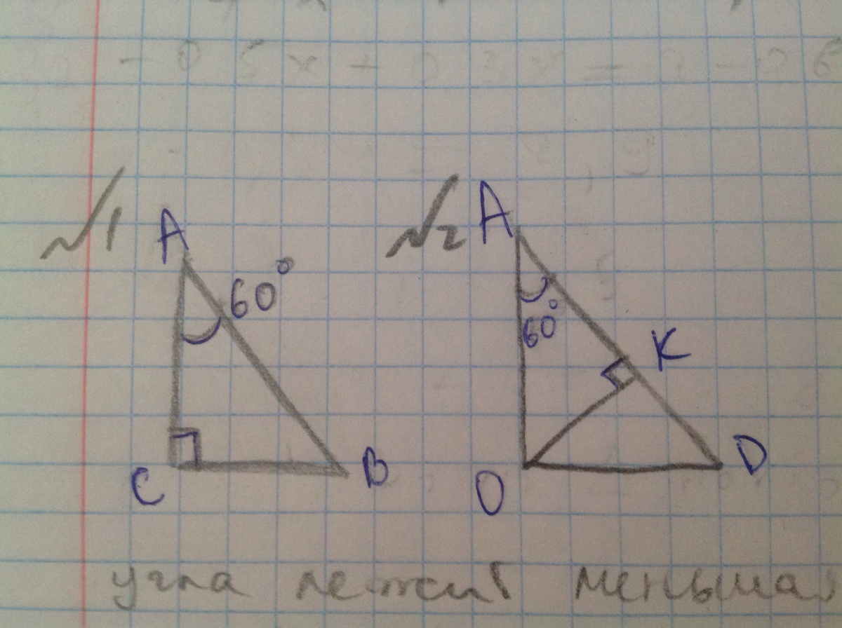 1). тк угол А + уАКО + у АОК = 180 гр, то у АОК =180-60-90(тк ОК высота)=30гр