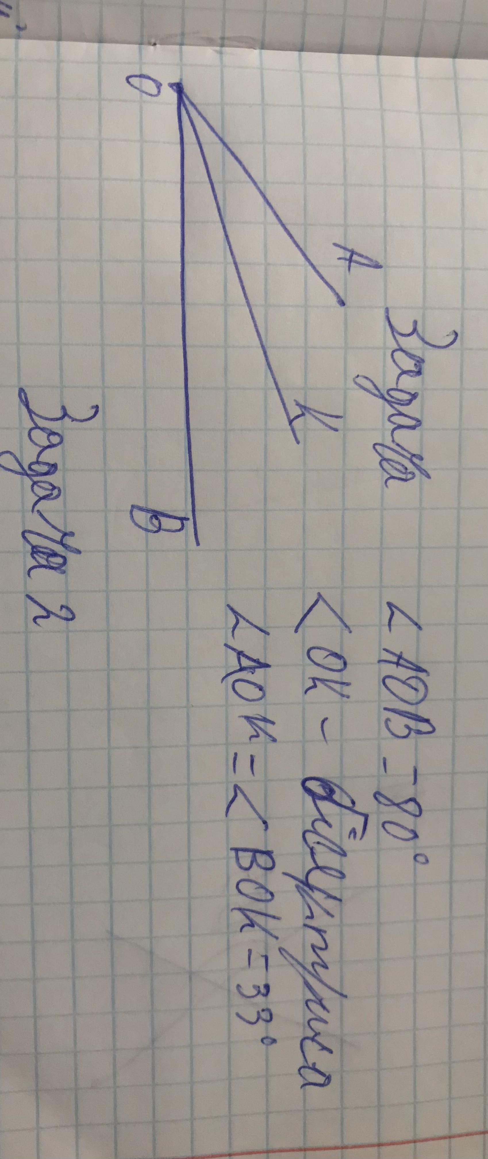 там кут АОК і ВОК будуть не 33°, а кут АОК=кут ВОК=кут АОВ÷2=80° ÷ 2 =40° кут АОК=куту ВОК =40°