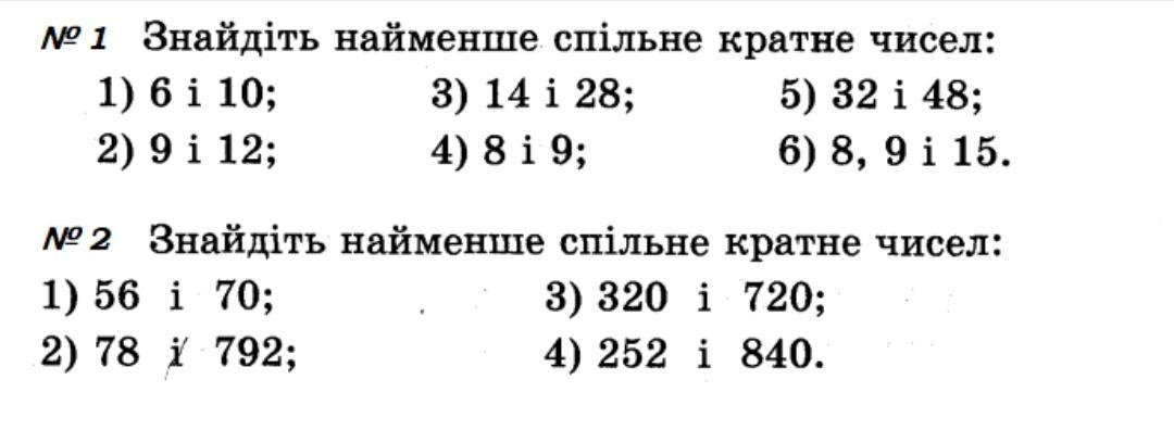 1) 56 = 23 • 7; 70 = 2 • 5 • 7; НСК(56; 70) = 23 • 5 • 7 = 280;