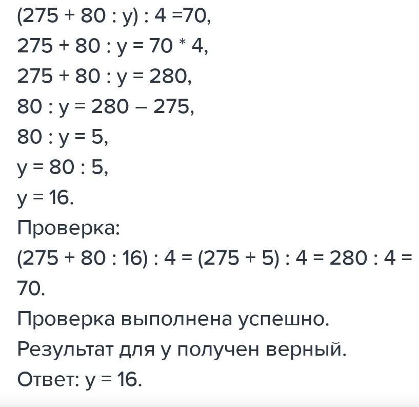 Нужно сначала поделить, но напишы что означает у. Потом добавляй 275. И на последок поделить на 4. И ещё, =70 ето типо ответ?