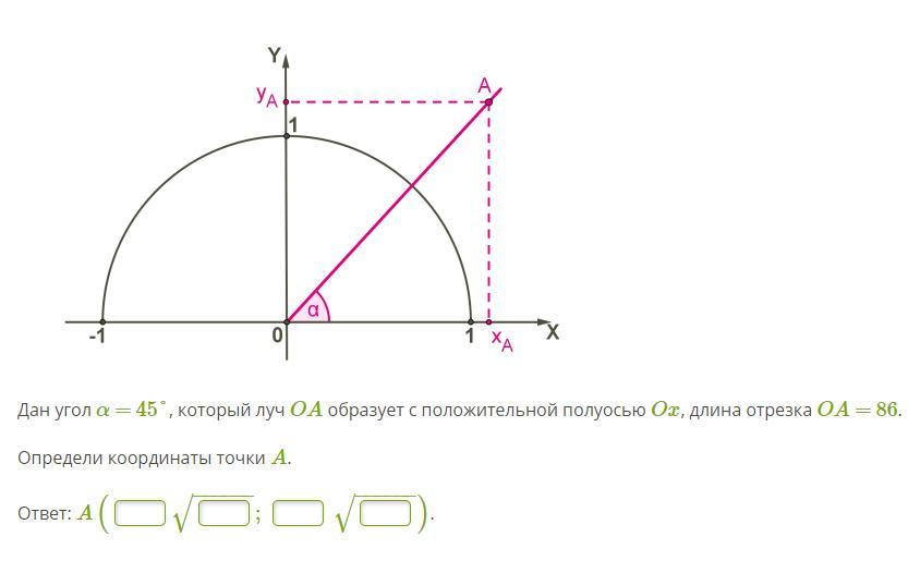 Ox=Oy=35√2. A(35√2;35√2).