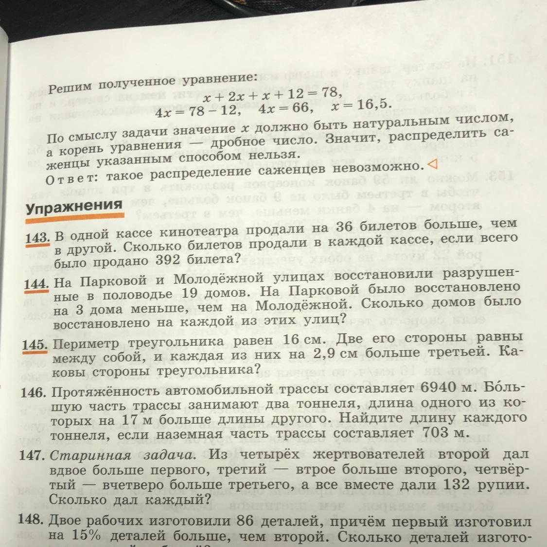 143. В одной кассе кинотеатра продали на 36 билетов больше, чем
