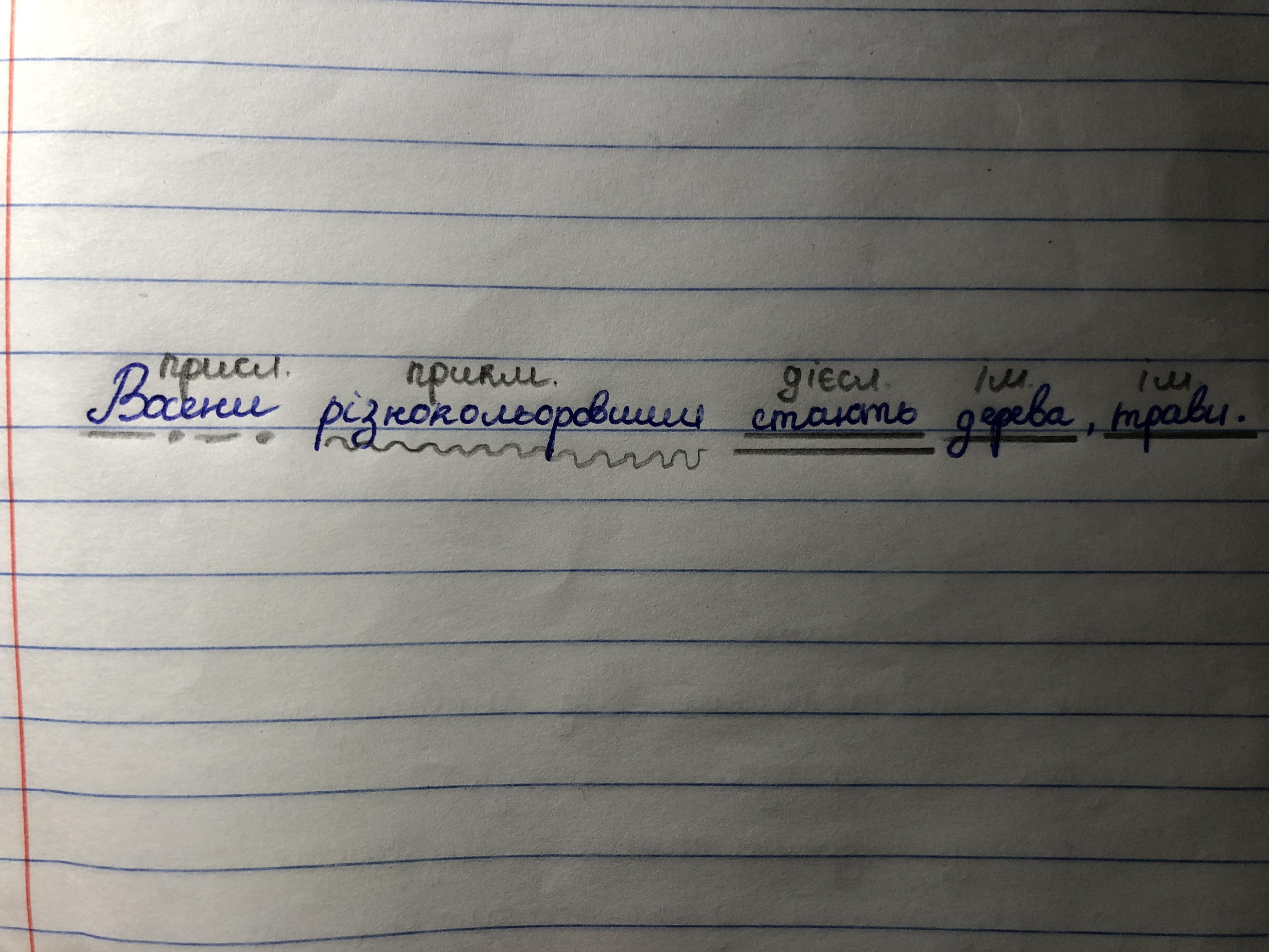 10. Підкресліть головні і другорядні члени речення, над кожним словом надпишіть частину мови.