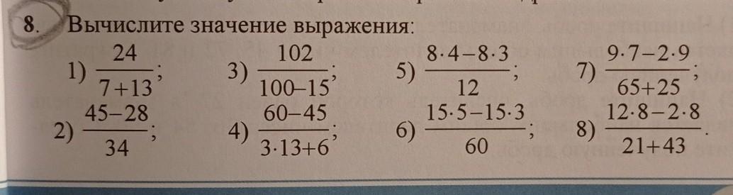 8) (12*8-2*8)/(21+43)=8(12-2)/64=8*10/64=10/8=5/4=1.25.
