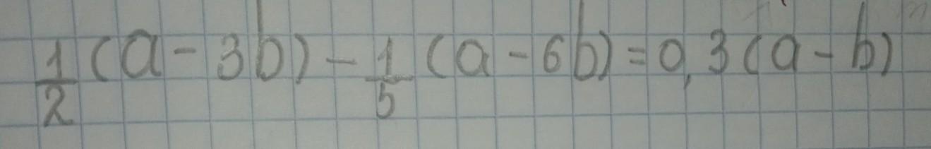 1/2(а - 3b) - 1/5(a - 6b) = 0,3(a - b)
