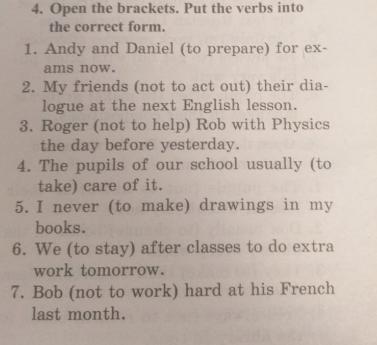 2. My friends are not acting out their dialogue in the next English lesson. 3. Roger didn't help Rob with physics
