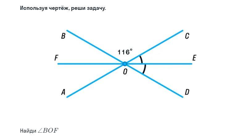 ∠ВОС + ∠СОD = 180° → 116° + ∠СОD = 180°, откуда