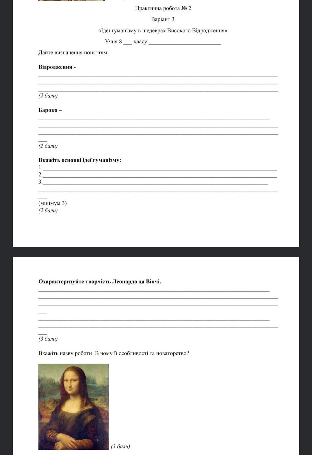 «Ідеї гуманізму в шедеврах Високого Відродження»