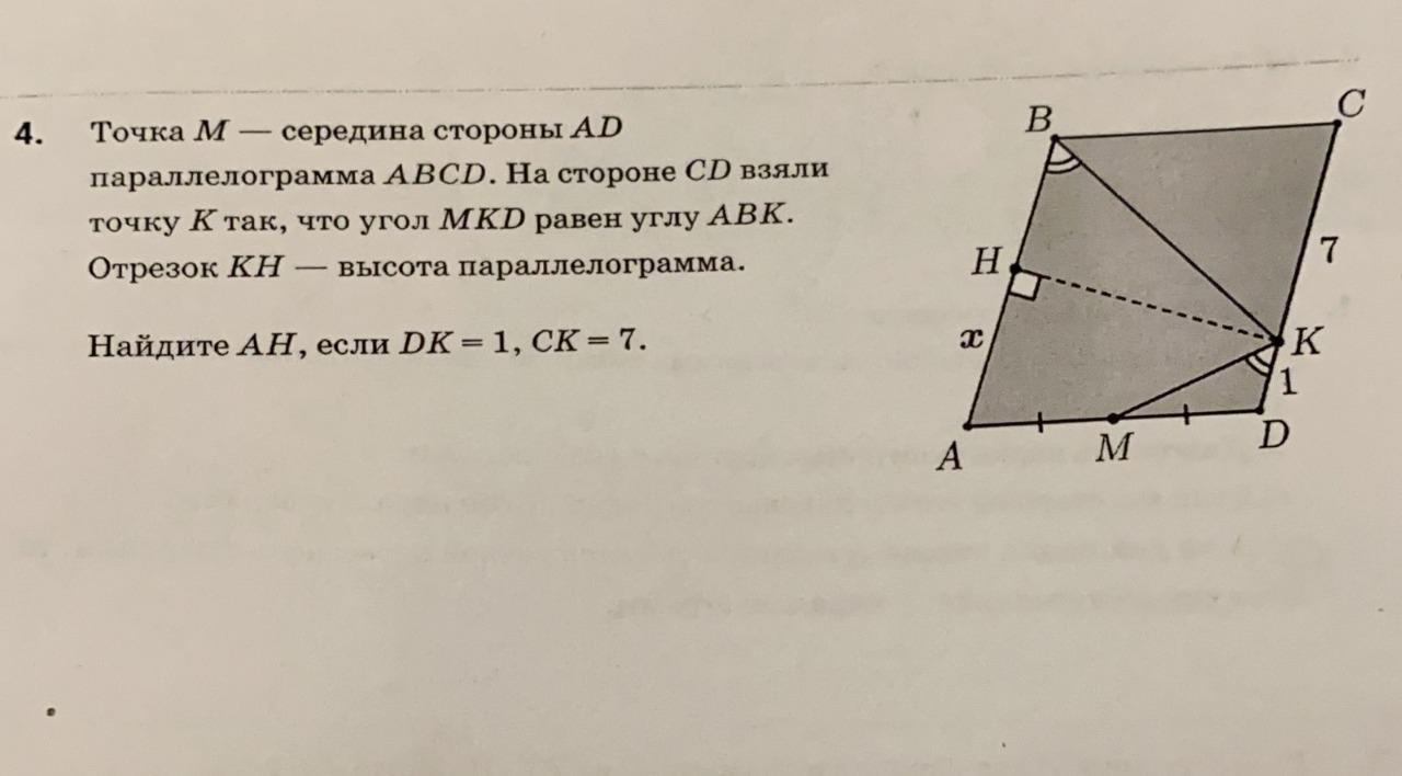 ⇒ ∠РАМ = ∠МDK (накрест лежащие при РВ || DC и секущей AD)
