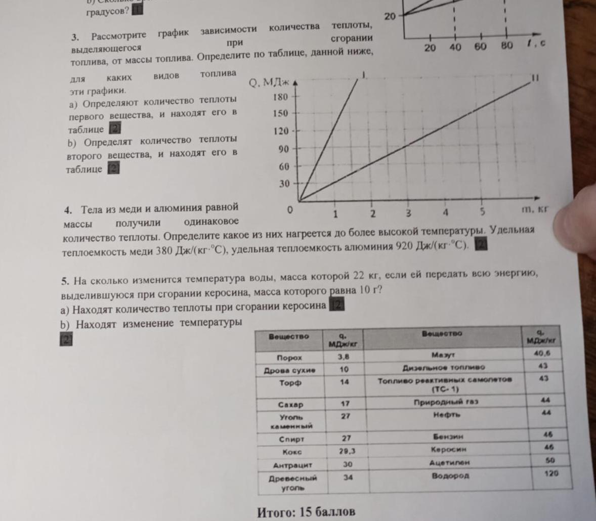Рассмотрите график зависимости Количество теплоты выделяющегося При сгорании топлива от массы топлива определите по таблицы данные ниже для каких видов топлива эти графики