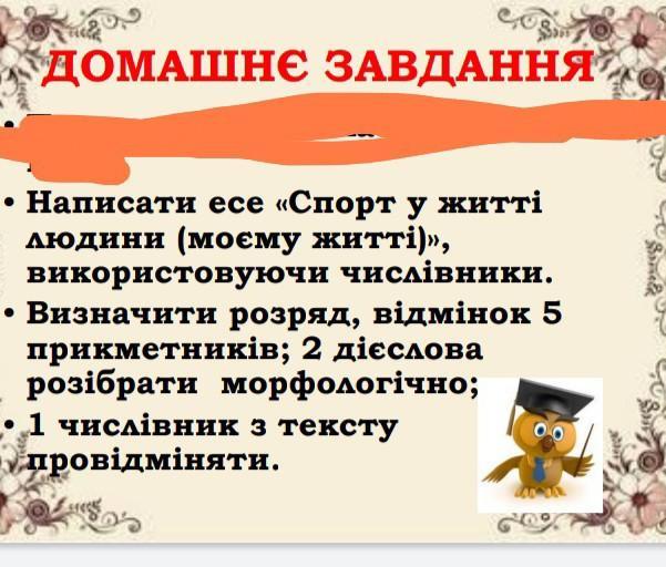 Написати есе «Спорт у житті людини (моєму житті)», використовуючи числівники. Визначити розряд, відмінок 5 прикметників; 2 дієслова розібрати морфологічно; • 1 числівник з тексту у провідміняти.помогите буду благодарна