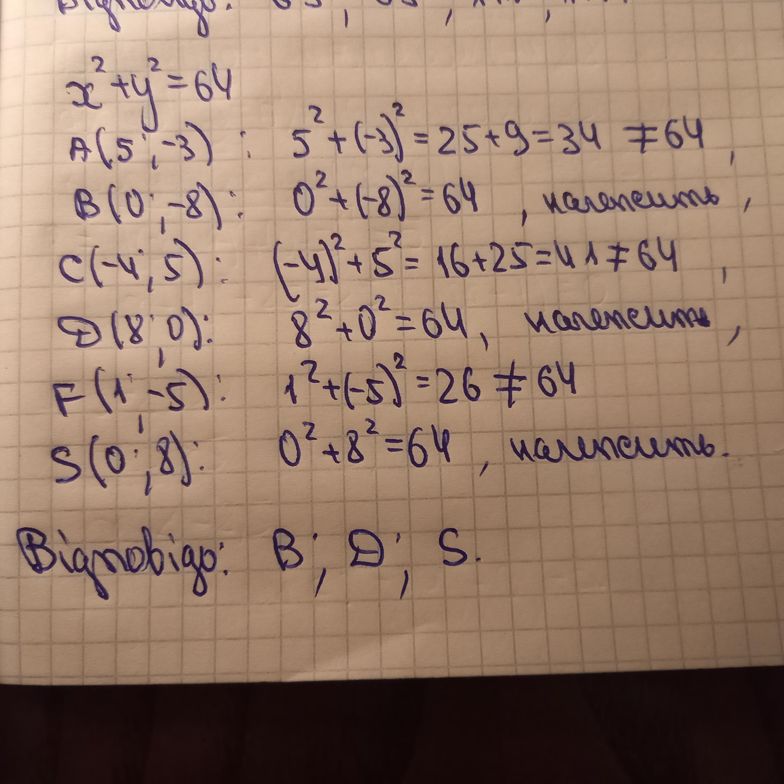 Коло задано рівнянням x2 + y2 = 64. Вкажіть точки, які належать колу: