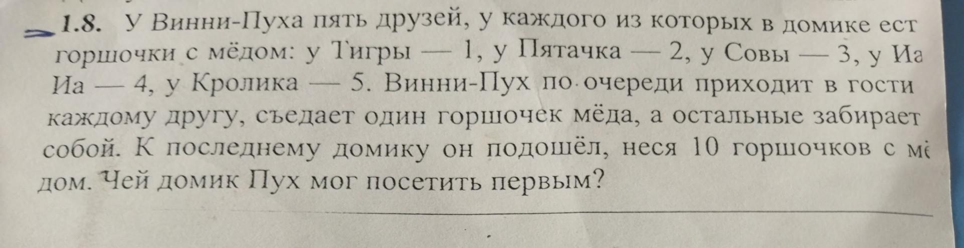 Винни пух мог посетить любой домик друзей первым, кроме Тигры