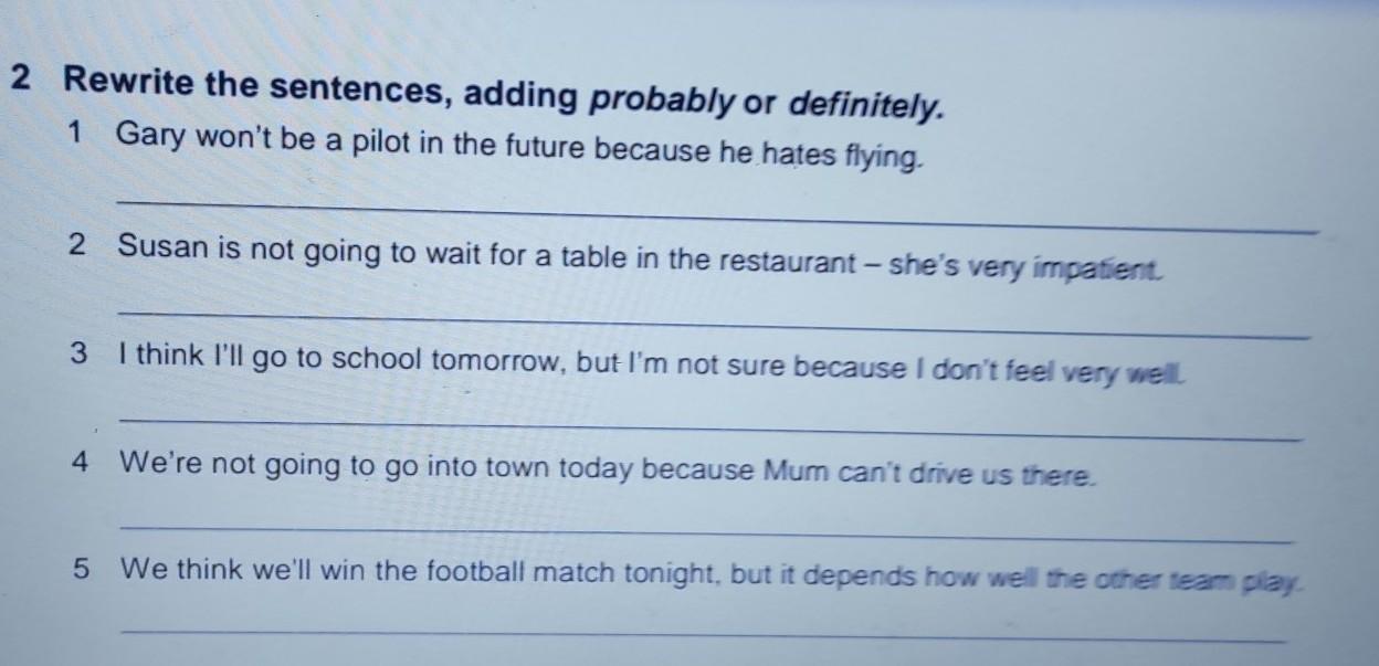 3. I think I'll probably go to school tomorrow, but I'm not sure because I don't feel very well.