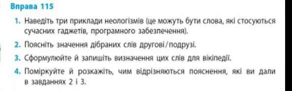 4) Вони відрізняються тим що в 2-ому розказується що таке неологізми, а в 3-ому тим що я розказала/розказав що значать слова які я записала/записав.