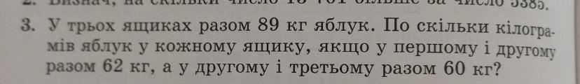 Відповідь: у 1 ящику-27 яблук, у 2-33 яблука, а у 3-29 яблук.