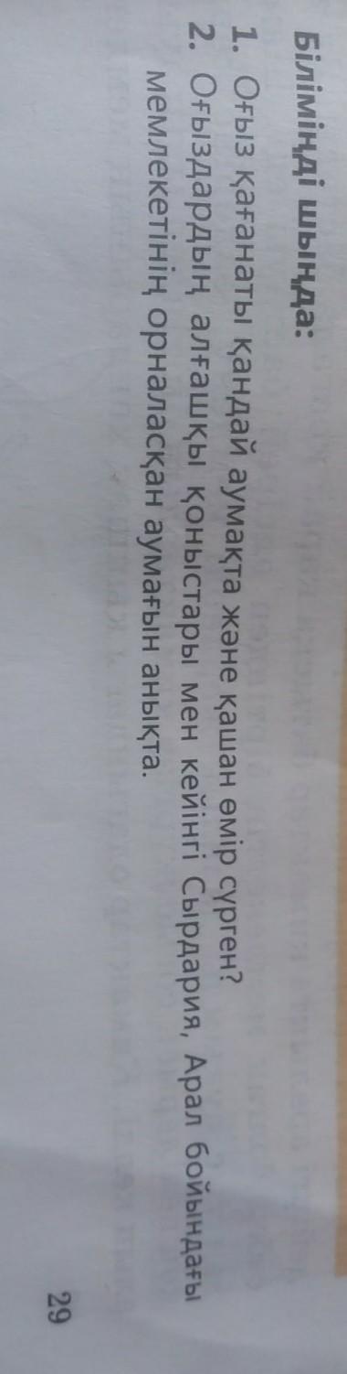 Оғыздардың алғашқы қоныстары мен кейінгі Сырдария, Арал бойындағы мемлекетінің орналасқан аумағын анықта