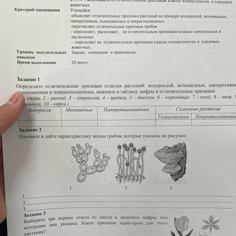 Определите отличительные признаки отделов растений: водорослей, моховидных, папоротникс