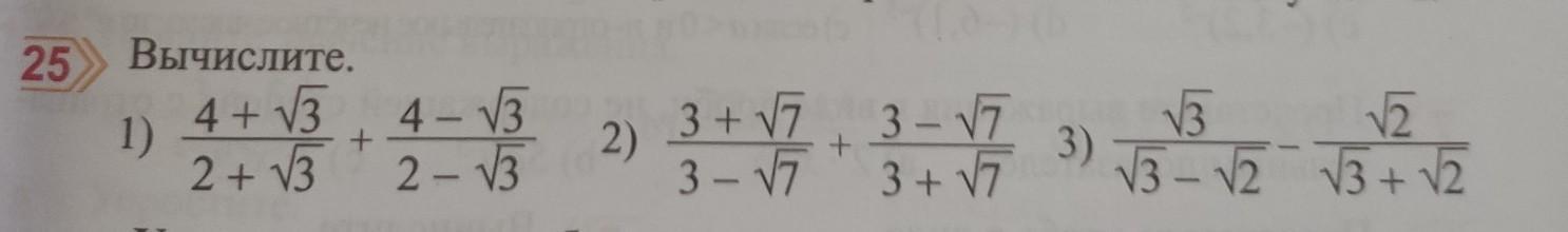 2) (3+√7)/(3-√7) +(3-√7)/(3+√7)=((3+√7)²+(3-√7)²)/((3-√7)(3+√7))=(9+6√7 +7+9-6√7 +7)/(9-7)=32/2=16