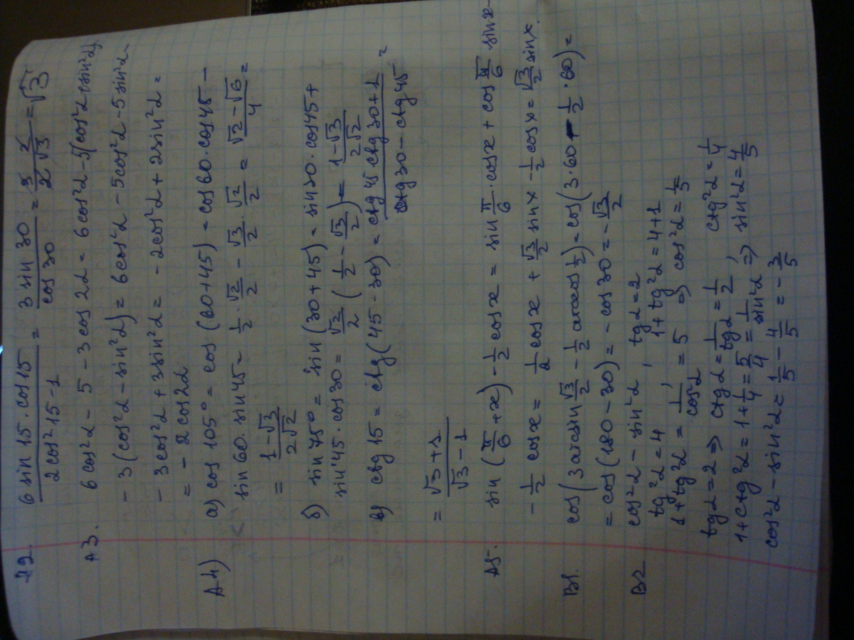 6sin(15)cos(15)/(2cos^2(15)-1)=3*sin(30)/cos(30)=3tg(30)=корень(3)