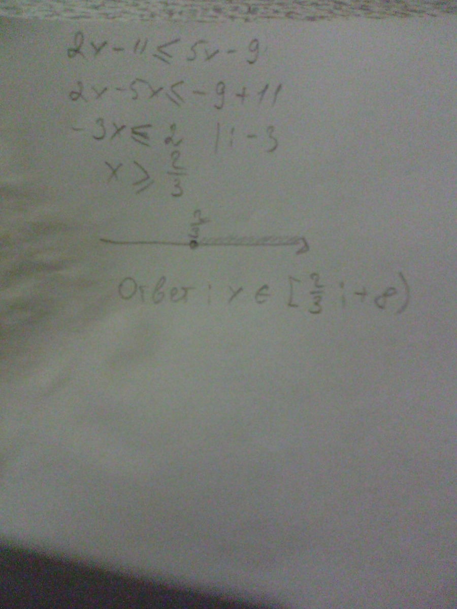 2x-5x<=(знак с черточкой) -9+11; -3x<=2; x>=-2/3