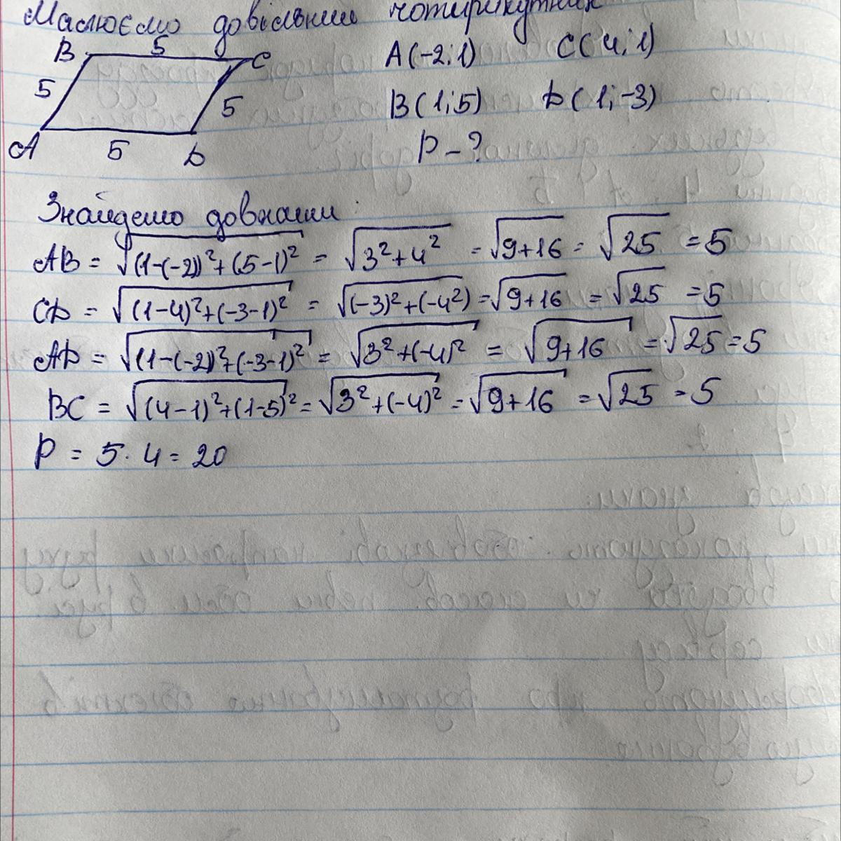 Знайдено периметр довільного чотирикутника