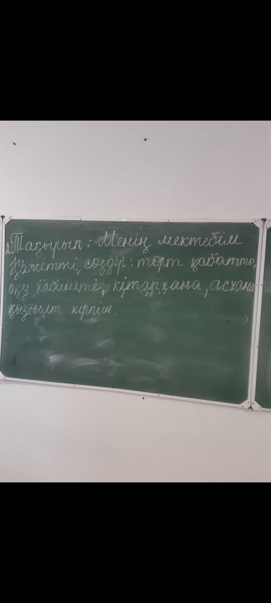 Менің мектебім үлкен. Бұл мектепте мен (сынып) сыныбында оқимын. Бұл мектеп төрт қабатты. Және оқу кабинеттері өте көп. Мектеп қызғылт кірпіштен жасалған. Асхана бірінші қабатта, ал кітапхана ... қабатта.