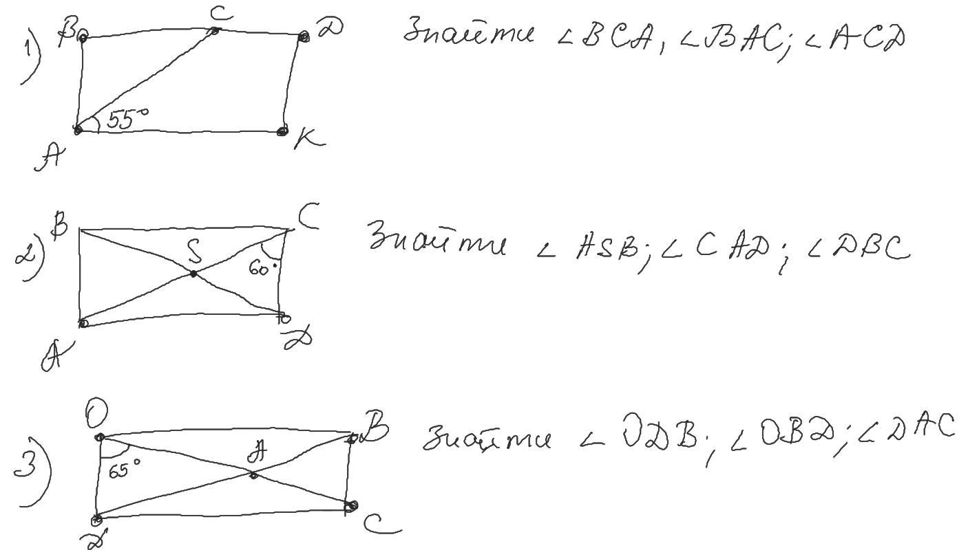 1. ∠ВСА=55°; ∠ВАС=35°; ∠АСД=125°