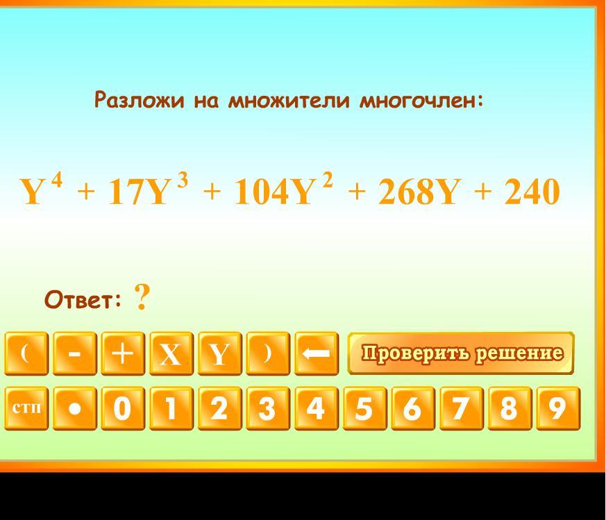 1 ответ (Y+2)x(Y+4)x(Y+6)x(Y+5) x=множить