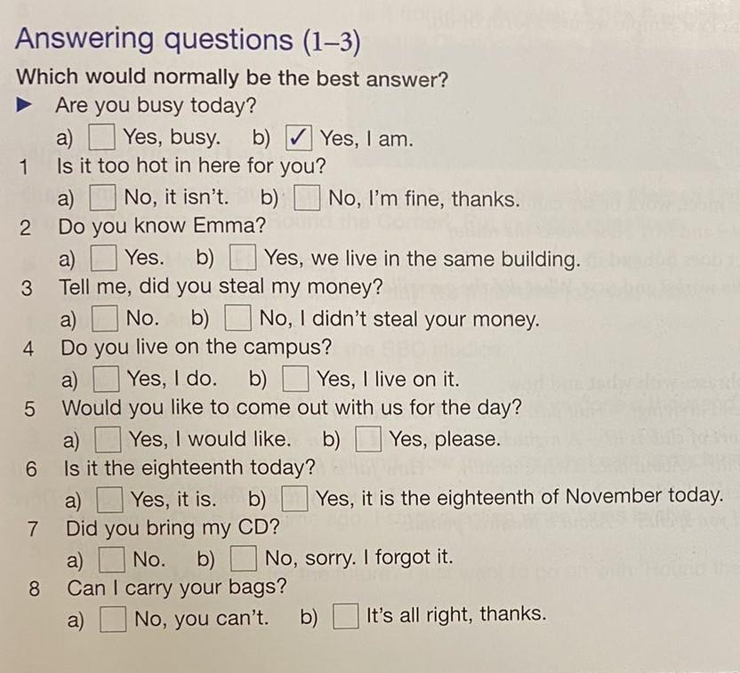 там нужно ответить на вопросы смотря на их начало, так: