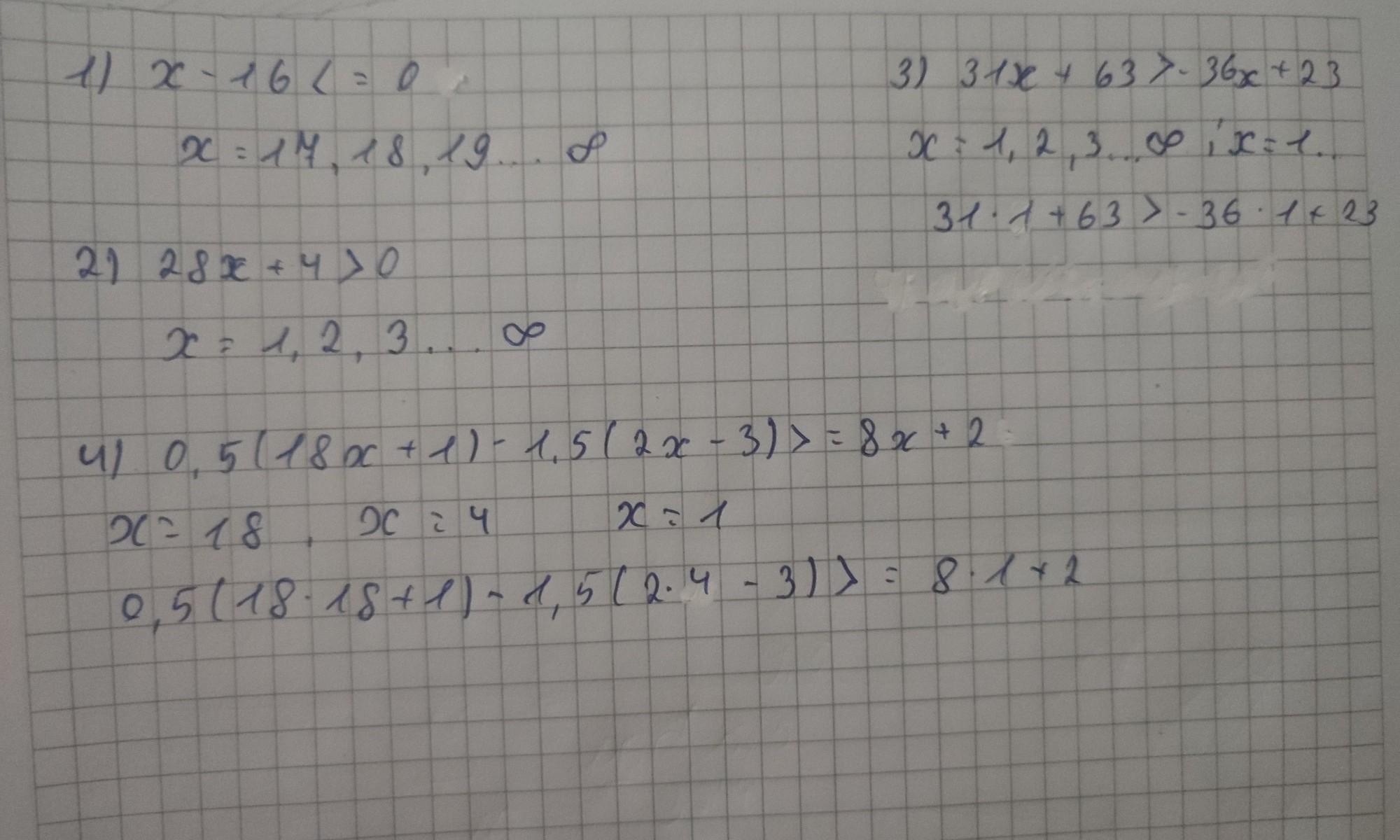 4) 0,5(18x+1)-1,5(2x-3)>= 8x+2