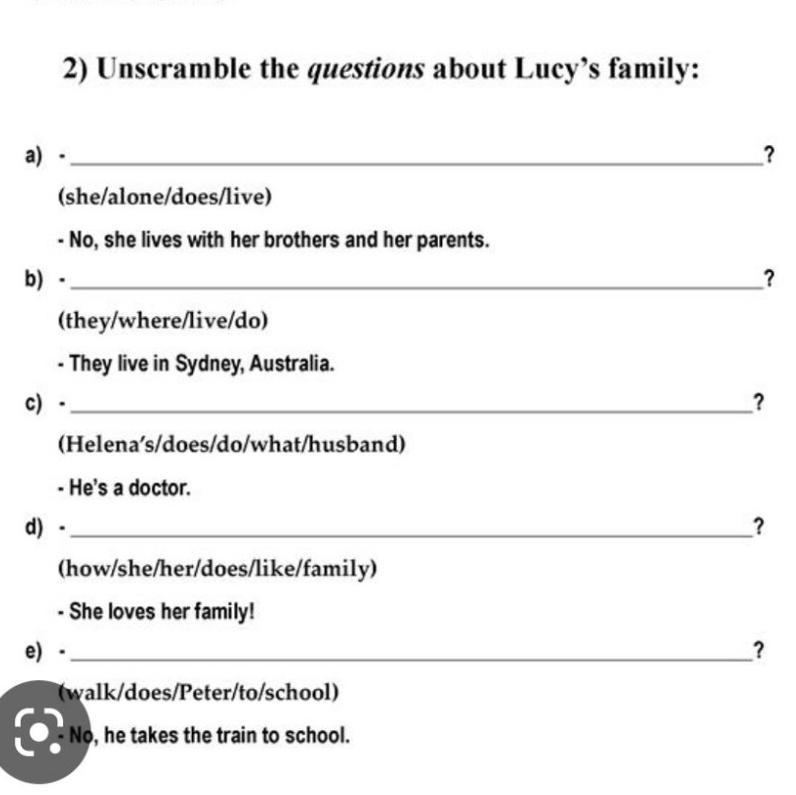 2) Unscramble the questions about Lucy's family: